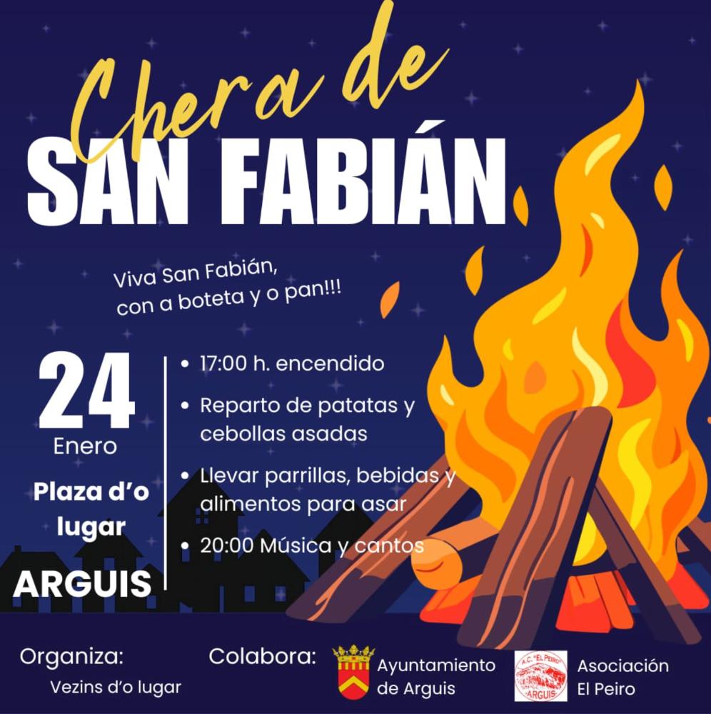 El próximo 24 de enero de 2026, Arguis celebrará la tradicional Hoguera de San Fabián.